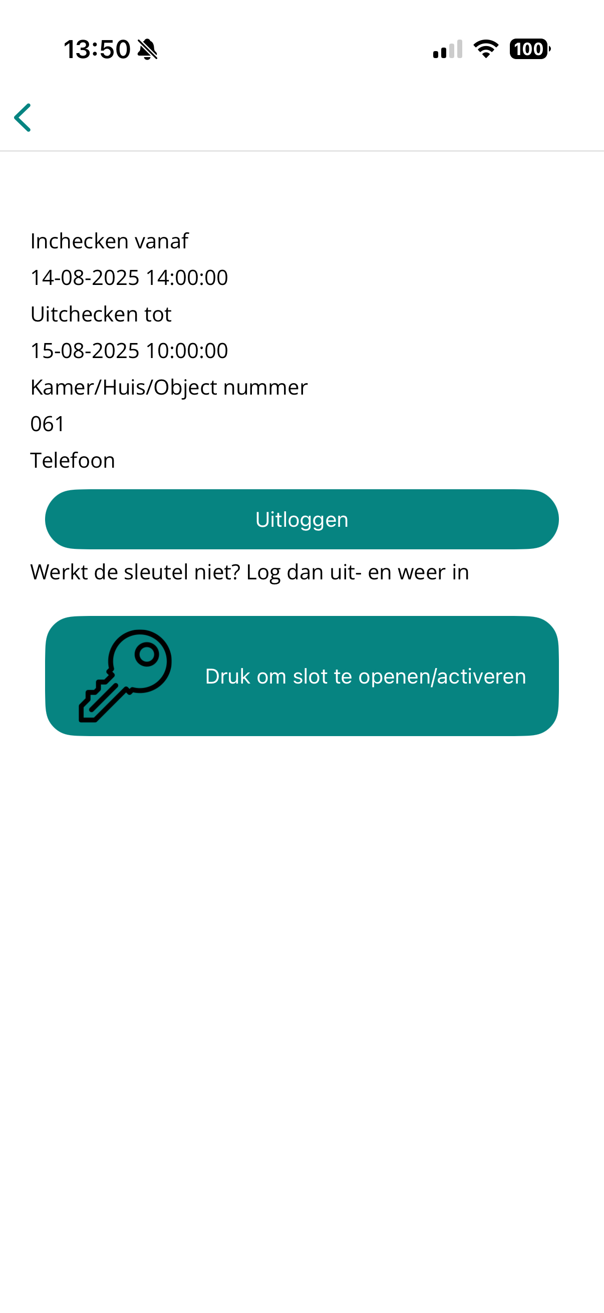 Log in met je boekingsgegevens (Booking Expert) om je sleutel op te halen en te gebruiken. De sleutel wordt gecached voor offline gebruik.